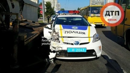 Как сообщалось, в среду, 8 июля, утром автомобиль киевской полиции попал в ДТП. Он столкнулся с маршруткой на остановке около Святошинского моста на проспекте Победы.
