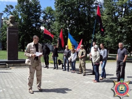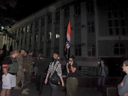 На пикет в связи с последними событиями в Мукачево к зданию главного управления МВД в Днепропетровской области вышло около 50 представителей «Правого сектора», к ним присоединились бойцы из других подразделений, волонтеры.