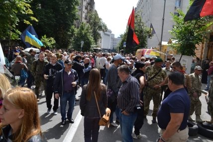 В Киеве на улице Банковой напротив здания Администрации Президента Украины "Правый сектор" начал акцию протеста. Сейчас возле АП собралось от 100 до 200 человек, часть из которых одета в военную форму. Представители "ПС" установили палатку, возле микроавтобуса с надписью "Правый сектор. Украинский добровольческий корпус" установлена звуковая система, раздается патриотическая музыка.
