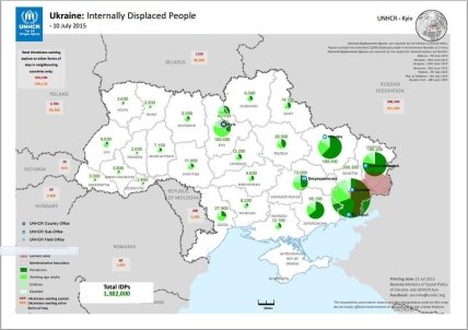 По данным Государственной службы чрезвычайных ситуаций Украины, больше всего внутренне перемещенных лиц размещено в Луганской (199 тыс. 202 человека), Харьковской (179 тыс. 590 человек), Донецкой (108 тыс. 925 человек), Днепропетровской (84 тыс. 184 человека), Запорожской (64 тыс. 307 человек), Киевской (42 тыс. 661 человек) областях и в Киеве (39 тыс. 47 человек).