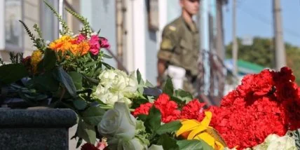 Кроме того, почтить память жертв трагедии пришли Президент Петр Порошенко, Премьер-министр Арсений Яценюк, секретарь СНБО Турчинов, заместитель министра обороны по евроинтеграции и некоторые депутаты.