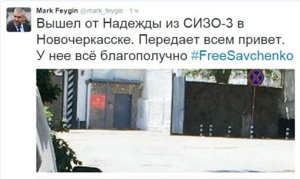"Вышел от Надежды из СИЗО-3 в Новочеркасске. Передает всем привет. У нее все благополучно", - написал адвокат.