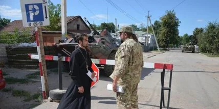 Военные капелланы - священнослужители Украинской Православной Церкви Киевского патриархата, - отправились на передовую и стали в строй частей и подразделений сектора "А".
