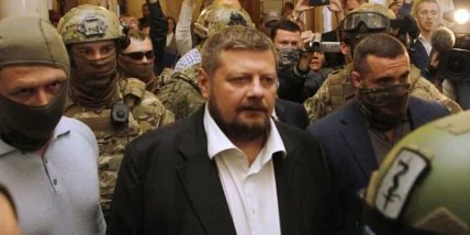 После заседания фракции Радикальной партии И.Мосийчук покинул здание украинского парламента в сопровождении правоохранителей.