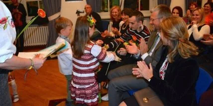 Украинских героев, помимо взрослых исполнителей, поздравили музыкальным выступлением и собственными рисунками воспитанники украинской школы развития ребенка “Веселка” под управлением Анны Гилецкой.