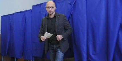 Премьер-министр Украины Арсений Яценюк пришел на избирательный участок в Печерском районе Киева, чтобы проголосовать на местных выборах.