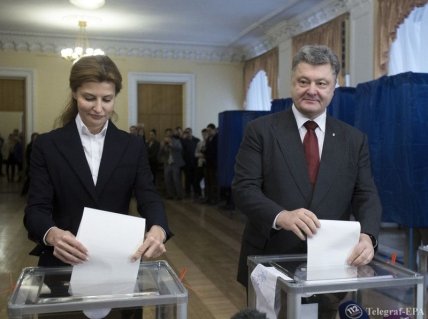 Президент Украины Петр Порошенко с женой проголосовали на местных выборах