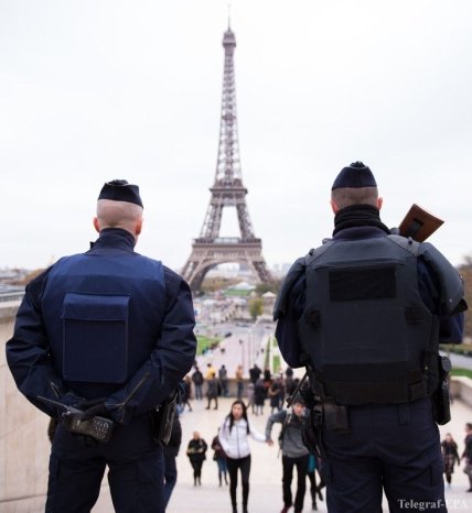 Французская полиция патрулирует площадь рядом с Эйфелевой башней