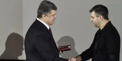 Президент Петр Порошенко наградил Крестом Ивана Мазепы Евгения Афинеевского - режиссера документального фильма "Зима в огне", посвященного событиям Революции Достоинства.