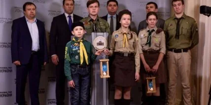 Представители Национальной скаутской организации Пласт передали Вифлеемский огонь мира депутатам Верховной Рады.