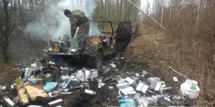 "Убегая нарушители заехали в чащу и подожгли свое транспортное средство, а сами скрылись. Мгновенно вспыхнув, автомобиль вместе с товаром сгорел", - сказано в сообщении.