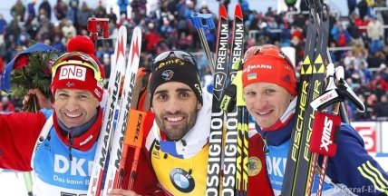 Сергей Семенов в компании Мартена Фуркада и Уле-Айнара Бьорндалена