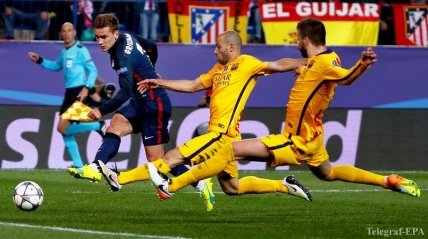 В ответном четвертьфинальном матче Лиги чемпионов "Атлетико" обыграл "Барселону" и вышел в полуфинал Лиги Европы.
