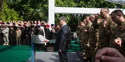 Президент Порошенко выступил с речью перед молитвой за мир и победу, в которой приняли участие капелланы и участники АТО.
