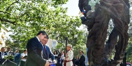 Глава государства также отметил, что памятник украинскому гению и Пророку установлен неподалеку от памятника болгарскому национальному герою, поэту-революционеру Христо Ботеву. "Это не случайно, ибо гений Тараса, гений Кобзаря вдохновил большое количество поэтов-революционеров на их творчество, в том числе и представителей болгарского Возрождения. Две выдающиеся фигуры в истории наших дружественных стран, Шевченко и Ботев, строили храм духовности, из которого черпали веру и надежду миллионов украинцев и болгар, которые завоевали свою свободу и независимость, и для украинцев, и для болгар превыше всего", - отметил Президент.