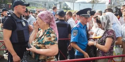 "На данное время на молебен на Владимирской горке собралось около 4,5 тысячи верующих. По предварительной информации, литургия начнется в 13:00, после чего прихожане отправятся к Киево-Печерской лавре", - говорится в сообщении.