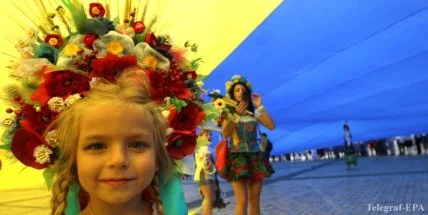 Синий цвет на флаге Украины означает мирное небо, а желтый - пшеничные поля.