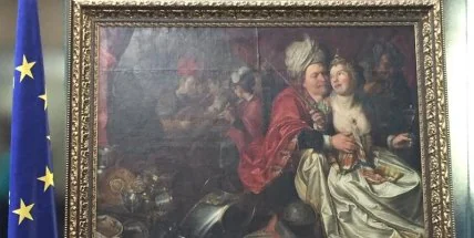 Речь идет о картинах XVII-XVIII века "Крестьянская свадьба" Гендрика Богарта, "Кухонная сцена" Флориса ван Шутена, "Мир женщины", "Возвращение Иефая" Якоба Вабена и "Ньюстраат в Горне" Исаака Уватера.