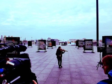 Экспозиция, что продлится до 14 ноября, открылась под музыкальное сопровождение известной скрипачки и общественной активистки Марины Бондас, сообщает корреспондент Укринформа в ФРГ.