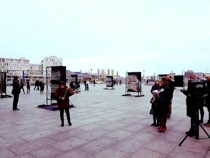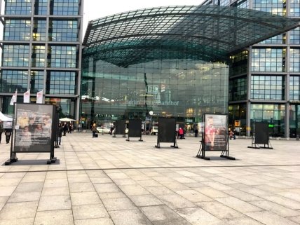 На площади перед центральным железнодорожным вокзалом в Берлине в пятницу открылась выставка под открытым небом "Displaced. 12 Stories from Ukraine".