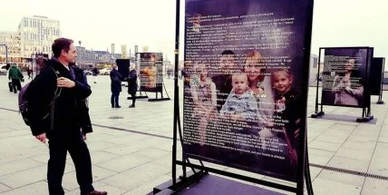 На площади перед центральным железнодорожным вокзалом в Берлине в пятницу открылась выставка под открытым небом "Displaced. 12 Stories from Ukraine".