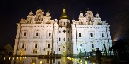 Успенский собор - главный храм Киево-Печерской лавры. Построен в 1073-1078 годах по инициативе прп. Феодосия Печерского за средства князя Святослава II Ярославича. За свою историю несколько раз подвергался изменениям и разрушениям. После закрытия монастыря в 1926 г. храм использовался как объект музейного показа. Почти полностью уничтожен взрывом 3 ноября 1941 г. Согласно Указу Президента Украины от 9 ноября 1995 года Успенский собор был восстановлен в 1998-2000 годах.