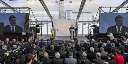 "Это самая большая в мире движимая конструкция, которая когда-нибудь строилась человечеством. Коалиция в поддержку Украины из 28 стран собрала более 1,417 млрд евро для того, чтобы вместе с Украиной ее построить", - заявил П.Порошенко на церемонии завершения надвижки арки на объект "Укрытие" Чернобыльской АЭС во вторник.