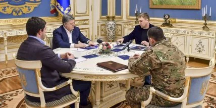 "На настоящее время изъяты все необходимые материалы, все оружие, задержаны все участники, продолжаются непрерывные допросы", - отметил Порошенко.