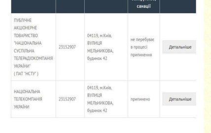 Соответствующая запись в базу госреестра была внесена в четверг, 19 января, однако датой регистрации юрлица указано 20 февраля 1995 года. Под присвоенным идентификационным номером 23152907 ранее была зарегистрирована "Национальная телекомпания Украины", деятельность которой в настоящее время указана, как прекращенная.