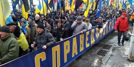 Марш национального достоинства, организованный Национальным корпусом, "Правым сектором" и ВО "Свобода" завершился митингом у стен Верховной Рады Украины в среду.