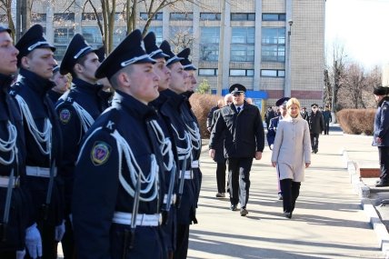Светличная и заместитель министра внутренних дел Украины, выпускник этого вуза Вадим Троян, вручили выпускникам дипломы с отличием.