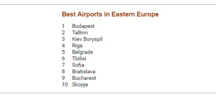 Также в десятку вошли аэропорты Тбилиси, Софии, Братиславы, Бухареста и Скопье.