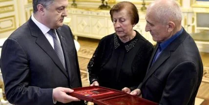 Президент Петр Порошенко вручил родителям погибшего в зоне АТО оперного певца Василия Слипака Золотую Звезду Героя.