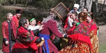 В Мамаевой Слободе воссоздали обряд, в котором неженатые парни обливают молодых девушек водой.