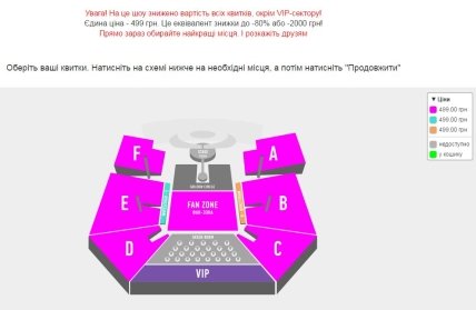 Организаторы предоставили скидку до -80% или до -2000 гривень на билеты во все отделения МВЦ на Левобережной, кроме VIP-сектора. По состоянию на 16:00 на сайте бронирования доступны несколько сотен билетов.
