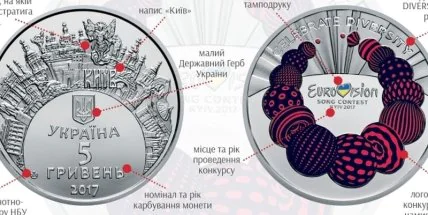 Национальный банк Украины 11 мая 2017 года введет в обращение памятную монету, посвященную проведению 62-го песенного конкурса Евровидение-2017 в Украине.
