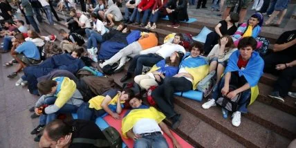 Напомним, митинг под Украинским домом продолжается уже шестой день. Участники акции протеста требуют от Президента Украины не подписывать скандальный закон о языках.