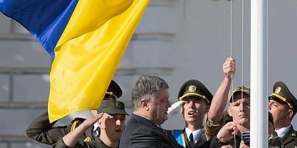 В Киеве на Софийской площади президент Украины Петр Порошенко торжественно поднял государственный флаг. Трансляцию вел телеканал "112 Украина".