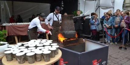 Для жителей и гостей города заварили кофе в огромной 20-литровой джезве, а кафе-кондитерская «Лигуминка» специально к событию испекла "Львовский" торт, в котором есть и кофе, и шоколад, и орехи.