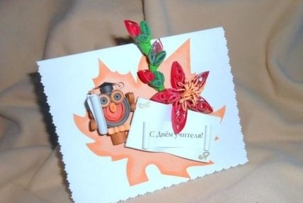 Открытка готова! Повозиться с ней, конечно, пришлось довольно долго, зато она надолго останется в памяти вашей учительницы. А тем, кто безума от hand made'а может понравиться идея как сделать бизнес на открытках.