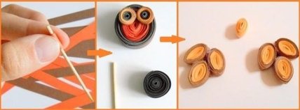 Нарежьте бумагу темно-коричневого и темно-оранжевого цветов на полоски, ширина которых около 4-5 мм. Количество полосок зависит от того, какого размера сову вы хотите видеть на открытке. Чем больше сова – тем больше нарезок. С помощью зубочистки скручивайте полоски в круг, подклеивайте кончик, затем приклейте следующую полоску и продолжайте скручивать до тех пор, пока кружок не достигнет оптимального размера. Чтобы сделать туловище будущей совы более овальным, слегка надавите на него пальцами по бокам. Между прочим, помимо открыток можно сделать и много других оригинальных открыток своими руками для учителя.