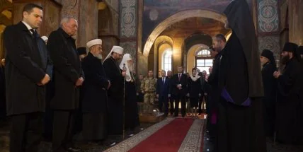 "Молитву за защитников Украины" в Софийском соборе Национального заповедника "София Киевская" провозгласил Патриарх Киевский и всей Руси-Украины, предстоятель УПЦ Филарет. К нему присоединились Верховный архиепископ Киево-Галицкий Украинской греко-католической церкви Святослав (Шевчук), Митрополит Киевский и всея Украины, Предстоятель Украинской православной церкви Онуфрий, епископ, ординарий Киево-Житомирской епархии Римско-католической церкви Виталий Кривицкий, Муфтий Духовного управления мусульман Украины Ахмед Тамим, председатель Всеукраинского союза объединений евангельских христиан-баптистов Валерий Антонюк, президент Украинского Библейского Общества Григорий Комендант, епископ, глава Украинская ской епархии Армянской апостольской церкви Маркос Оганесян, другие представители духовенства.