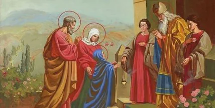 Родители Девы Марии, праведные Иоаким и Анна, молились о том, чтобы Господь послал им ребенка, так как пара была бездетна. Они дали обет, что если родится дитя, то посвятить его на служение Богу. Когда Пресвятой Деве исполнилось три года, святые родители решили выполнить свое обещание. Собрав родственников и знакомых, одев Пречистую Марию в лучшие одежды, с пением священных песен и с зажженными свечами в руках привели ее в Иерусалимский храм. Там встретил Богоотроковицу первосвященник с множеством священников.