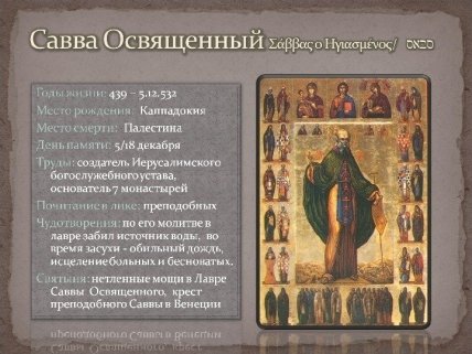 18 декабря церковь отмечает память преподобного Саввы Освященного.