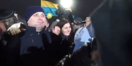 "Татьяна Олейник скромно стоит рядом с сыном, пока тот раздает комментарии журналистам и только говорит "Сашенька, сыночек". Она увидела его впервые почти за три года. Женщина ждала сына вместе с родными на холоде возле аэропорта "Борисполь" несколько часов, пока самолет с освобожденными из плена приземлится в Киеве. Татьяна Марковна услышала его голос по телефону впервые за полтора года и сразу потеряла сознание, но потом взяла себя в руки и мужественно встретила сына", - говорится в подписи к видео.