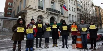 В Нью-Йорке накануне Нового года под посольством России устроили акцию с требованием освободить политзаключенного Кремля Олега Сенцова.