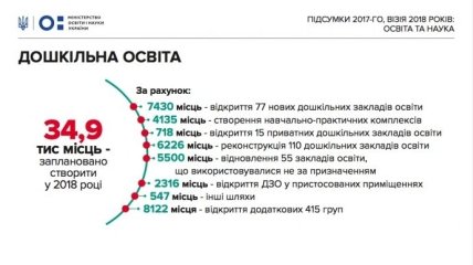 По данным МОН, за 2017 год удалось создать более 25 тысяч мест в дошкольных учебных заведениях. При этом в течение года очередь детей в ДУЗ сократилась на 31,5 тысячи.