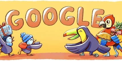 День второй: для зимних праздников появился дудл с пернатыми друзьями, которые уже не впервые радуют нас!