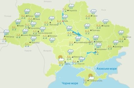 Температура ночью 3-8° мороза, в южных областях 0-5° мороза; днем от 3° мороза до 3° тепла, в Крыму 1-6° тепла; в Карпатах ночью 5-10°, днем 0-5° мороза.