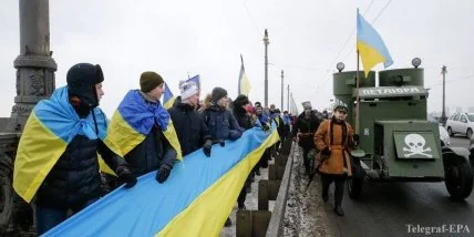 Сегодня в День соборности Украины в центре Киева был развернут самый длинный государственный флаг - более километра.